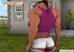 Beautiful Ashley Lane, in her final year of high school, is a incredibly muscular giantess, sporting incredible biceps, a tremendous eightpack and treetrunk legs. One day, Ashley gets in trouble with three guys at school. After punishing them, she is at risk of being expelled, so she goes looking for ways to set things right. You'll see her pump, lift and flex. You'll watch how she intimidates, beats, squeezes and humiliates her male classmates. Yummy muscles all around!