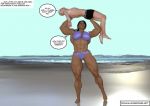 Hot Summer, chapter 2 Jason has agreed to an armwrestling rematch with the huge musclegirl Gillian. The stakes have been raised: if Gillian wins, the boys will do all the cooking on the trip. After the match, Gillian shows another incredible feat of strength, humiliating the two guys. Liz, Jason's sister, shows a surprising interest in and admiration for Gillian's muscles, and both her and Barb express an interest in growing bigger themselves. After they are gone, Robbie gets closer to Gillian's muscles, for the very first time discovering he get excited by the strength, power and muscles of a woman. I think I took the artwork to another level in this one. Gillian is superhot, and after she gets out of the water, her wet skin adds an extra dimension to the realism of this female bodybuilder. This story has a particular young love-atmosphere to it that may bring back some memories. I'm sure you will enjoy it. 84 pages