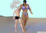 This big chapter of Katie starts with an erotic scene of Katie and Nathan in the beach cabin, where Katie easily lifts her small boyfriend in several ways. After that, we join Tom and his girlfriend at the sauna, where, all of a sudden, Angela shows up and dominates the two of them. By that night Tom is so obsessed with Angela that submits to her. What follows is Tom's training, where Angela explains him exactly how to behave towards her. There is also another part where Katie dominates her dad again. And then finally we finish with an incredible scene of Angela and Tom on the kitchen table, while the muscular girl has a phonecall with Katie.