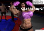 Rocky is an amateur boxer, participating in mystery fights. He doesn't know who he will be up against. This time, it turns out to be Serena, an incredibly tall female bodybuilder, who intimidates him from the start. Serena looks down on him from on high. Her big muscles seem to be carved out of granite. Serena will play with Rocky a little, but otherwise will show no mercy, and will just enjoy using her incredible punching power on the smaller man.