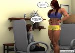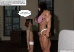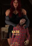 This big chapter of Katie starts with an erotic scene of Katie and Nathan in the beach cabin, where Katie easily lifts her small boyfriend in several ways. After that, we join Tom and his girlfriend at the sauna, where, all of a sudden, Angela shows up and dominates the two of them. By that night Tom is so obsessed with Angela that submits to her. What follows is Tom's training, where Angela explains him exactly how to behave towards her. There is also another part where Katie dominates her dad again. And then finally we finish with an incredible scene of Angela and Tom on the kitchen table, while the muscular girl has a phonecall with Katie.