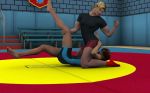 When skinny Josh is dropped from the wrestling team his girlfriend Cindy gives him a lesson on the mats to show him why. He simply does not have the muscle power to stop her. Then she takes him home for some more personal lessons.