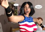 This is the first all new, Amazonias-exclusive chapter of Katie (which till the previous chapter has been running on LHart). In this episode, we see Katie, Angela, Tom and Nathan all together in Katie's gym. The big girls are gonna teach the small guys something about building muscle. Angela even bought a pair of cute little pink dumbbells.