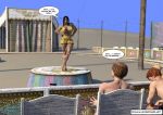 After the pizza night, Angela wants to see Tom again as soon as possible, so the female bodybuilder invites the other three to her house for a little swimming pool party. Angela asks Tom to cover her big back with sunblock, and later lifts him out of the water with her strong arms. Katie too has her fun, first throwing Nathan in the water, and later wrestling the two guys at the same time.